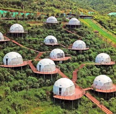 Escape to our luxurious Dome and Hutts Resort, where relaxation meets adventure! Nestled in stunning natural surroundings, our A-Frame Hutts and Glamping Domes offer the perfect retreat away from the city's hustle and bustle. Enjoy the fresh air and beautiful weather as you unwind in comfort and style. Our fully equipped accommodations provide a unique and unforgettable glamping experience. Book your serene holiday today and immerse yourself in nature's tranquility!